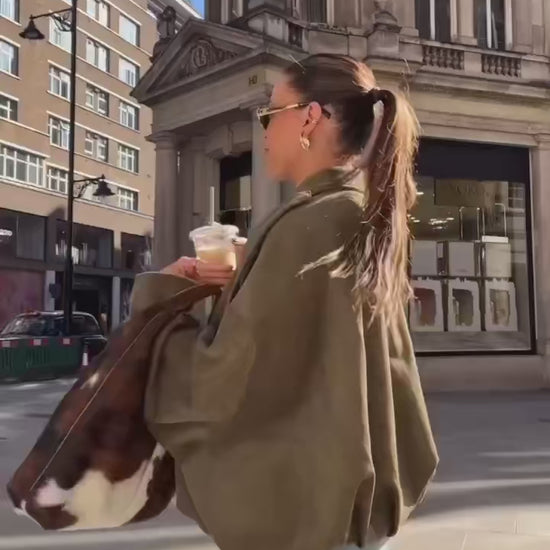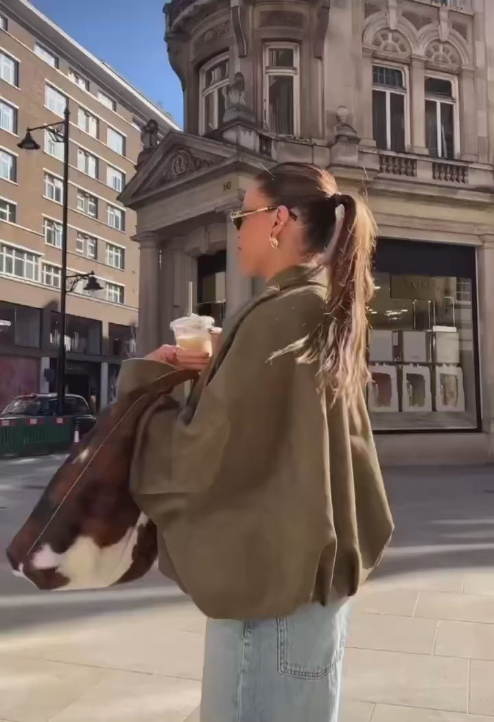 Effortlessly stylish and versatile, this oversized bomber jacket combines modern design with timeless comfort. Crafted from soft, lightweight fabric, it features a relaxed silhouette, drop shoulders, and an elasticized hem for a flattering drape.
